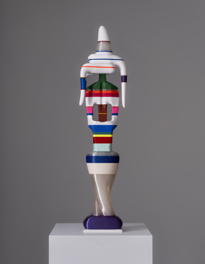 田中は抽象的な構成において、写真技法と絵画的手法を対置し、写真化学的な技術によって手描きの厚塗りを模倣します。エルスナーの卓越したドローイングは、過去のイメージ――今回の場合は日本のコレクションに所蔵されているフィンセント・ファン・ゴッホの絵画――を呼び起こします。これらの作品において彼は視覚的知覚と戯れると同時に、記憶や歴史的距離とも対話します。シモンの人物像は3Dプリンティングによって制作され、古代から現代に至るまで世界各地の非アカデミックな具象彫刻の数千点の画像を学習したニューラルネットワークの成果です。彼のオブジェは、ハイブリッドで非植民地的、そしてポストグローバルな美学という、ユートピア的でありながらも触れることのできるヴィジョンを体現しています。